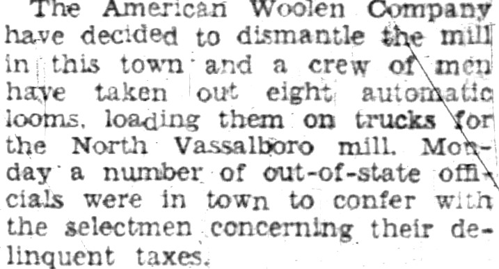 By Spring of 1934, any lingering hope of the American Woolen Company resuming operations in Hartland ended for good when they began dismantling and removing equipment from the mills.